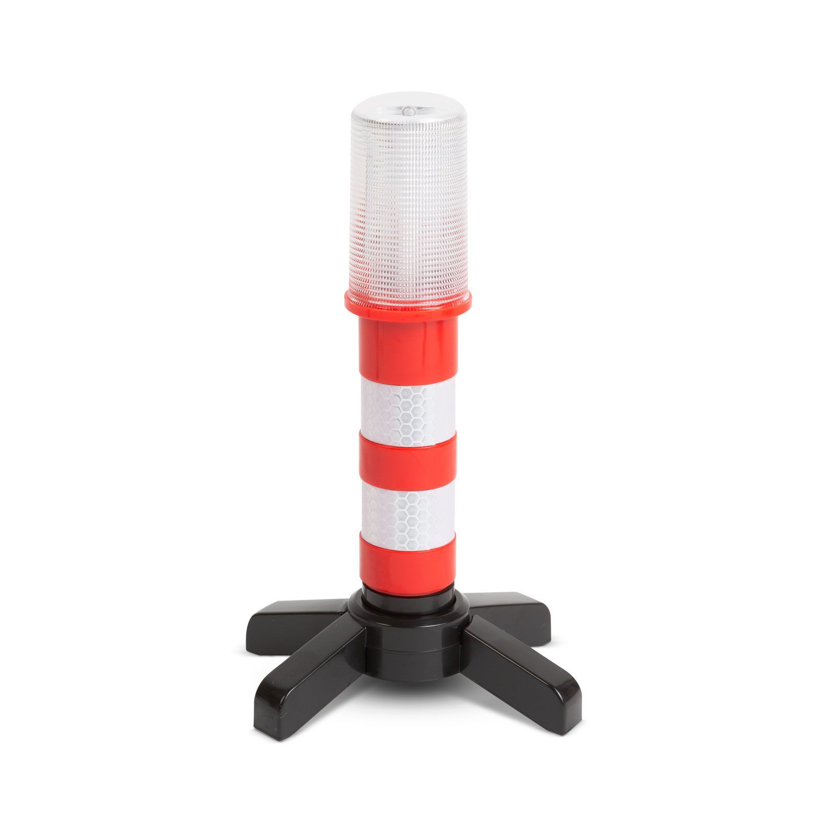 - Разполага с три режима на работа: мигаща червена светлина за аварийна сигнализация, постоянна червена светлина за продължително предупреждение и постоянна бяла светлина, подходяща и като работна лампа при ремонт или смяна на гума.