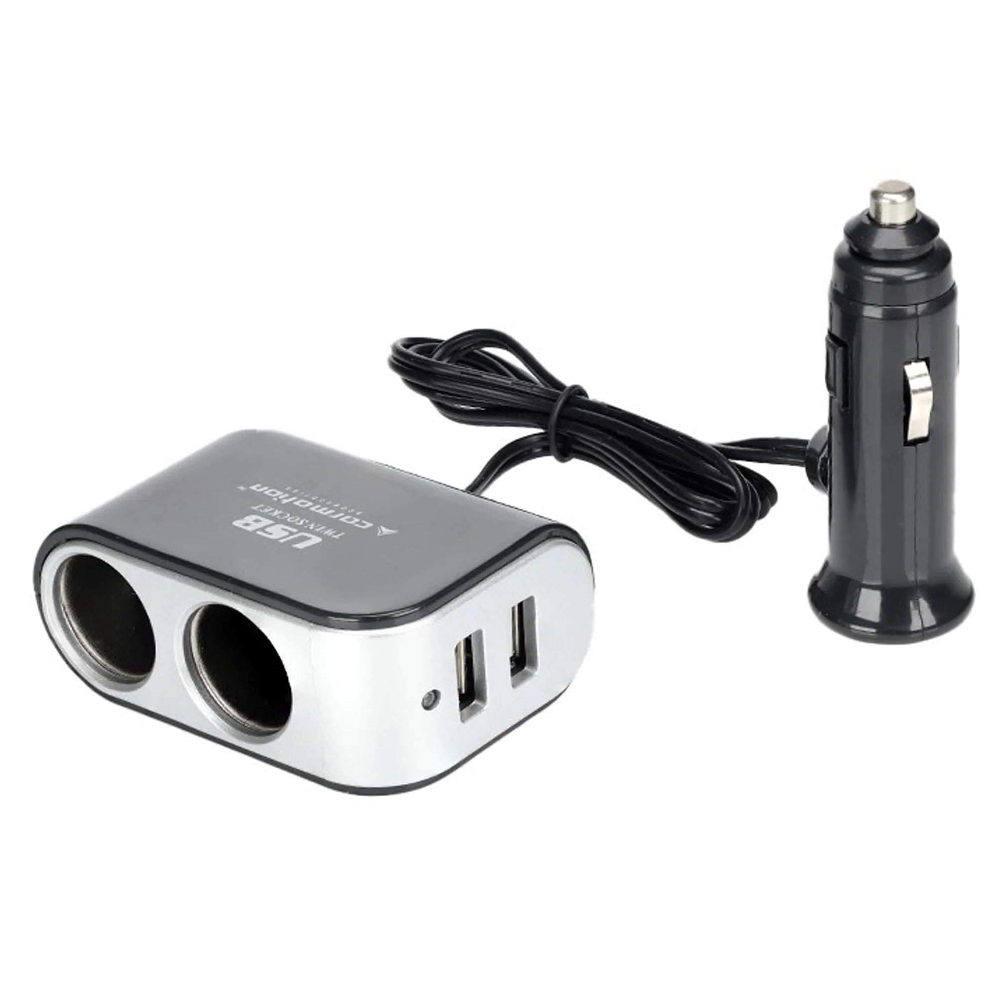 Optimiza la carga de tus dispositivos en el coche con este práctico adaptador de encendedor doble equipado con dos puertos USB. Su diseño resistente permite conectar simultáneamente hasta dos cargadores de encendedor y dos dispositivos USB, facilitando la carga de móviles, navegadores u otros accesorios durante tus viajes.